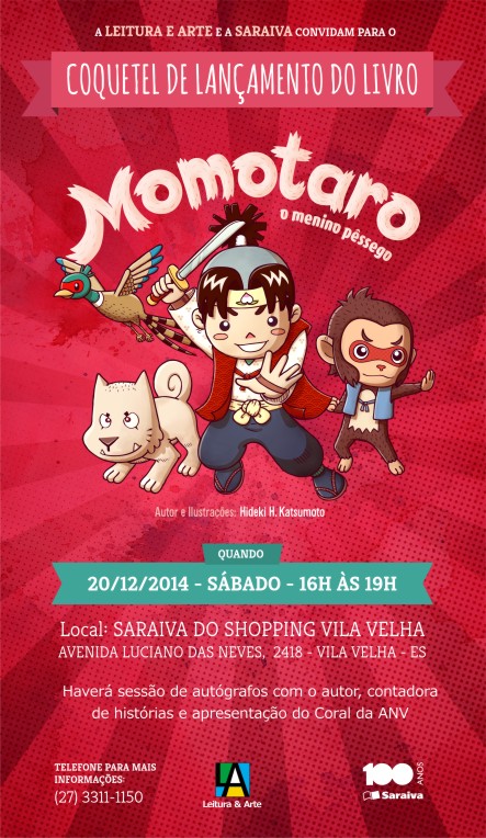 Perfeito! É a palavra que, na minha opinião, resume o lançamento do livro Momotaro - o menino pêssego, organizado pela Editora Leitura e Arte, na Saraiva do Shopping Vila Velha, no último sábado, dia 20 de dezembro!
